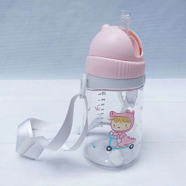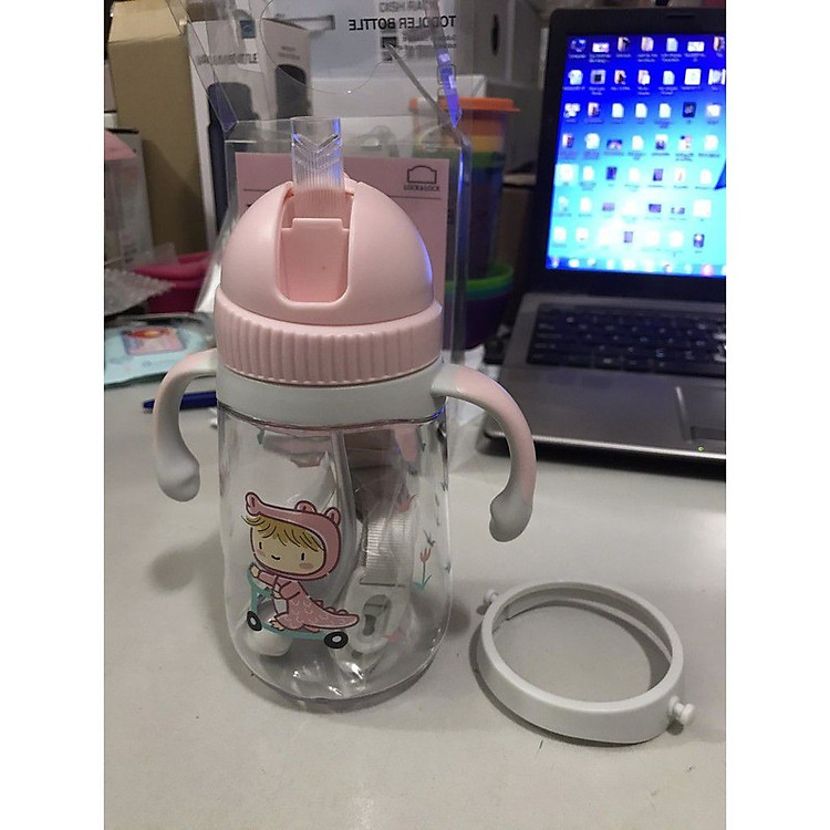 Bình có ống hút, có tay cầm giúp bé tự cầm uống dễ dàng. Có thể tháo 2 tay cầm bình và nắp dây đeo khi bé mang bình ra ngoài rất tiện lợi.