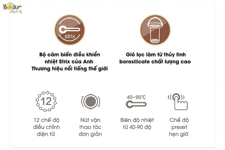 Máy Pha Trà Bear SUBE011 (YSH-C15Q5) sở hữu thiết kế nhỏ gọn, dung tích lên đến 1,5 lít phù hợp với nhiều nhu cầu sử dụng. Được tích hợp cảm biến nhiệt Strix với 12 chế độ nấu máy pha trà Bear SUBE011 giúp việc pha trà của bạn trở nên tiện lợi và nhanh chóng hơn bao giờ hết.