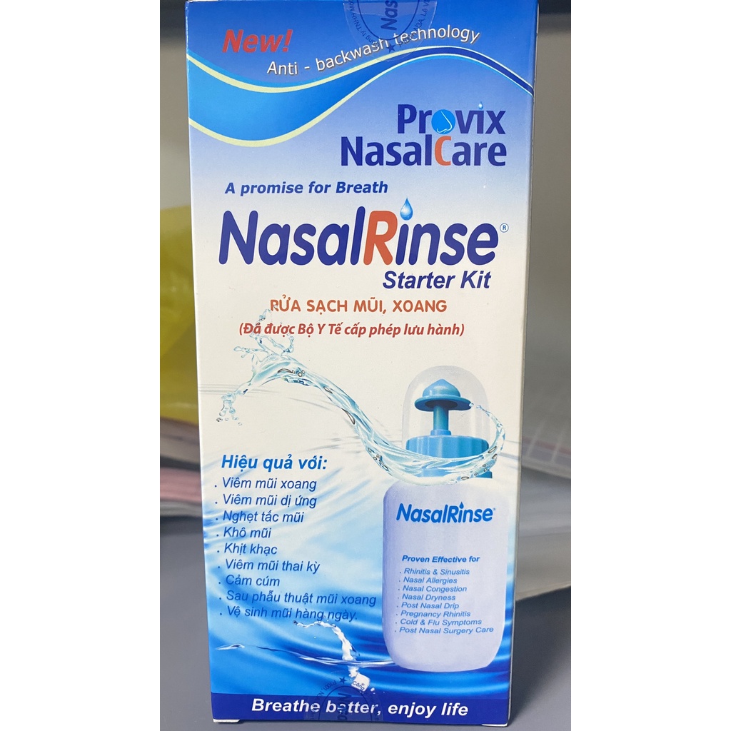 - Như vậy, biện pháp rửa mũi xoang bằng dụng cụ rửa mũi Nasal Rinse rất đơn giản, hiệu quả, dễ sử dụng, sạch sẽ, mang lại cảm giác dễ chịu và thư giãn cho bệnh nhân. - Bình rửa mũi Nasal Rinse được thiết kế chống chảy ngược gồm 2 van hoạt động song song, một van chất lỏng ra và một van không khí đi vào. Vì vậy, khi rửa nước chỉ chảy vào khoang mũi mà không chảy ngược lại vào bình nên ngăn ngừa được các chất nhiễm bẩn chảy ngược vào bình, từ đó ngăn ngừa được việc tái nhiễm khuẩn mũi xoang. CÁCH DÙNG : - CHO NƯỚC ĐUN SÔI ĐỂ ẤM VÀO CHAI NGANG MỨC 240ML - VẶN CHẶT NẮP VÀ LẮC NHẸ CHO ĐẾN KHI TAN HẾT BỘT - CÚI VÀ NGHIÊNG ĐẦU TRƯỚC BỒN RỬA NHẸ NHÀNG ĐƯA ĐẦU DỤNG CỤ VÀO MŨI - HÁ MIỆNG,NHẸ NHÀNG BÓP CHAI THEO TỪNG NHỊP - LẶP LẠI VỚI MŨI BÊN ĐỐI DIỆN KHI DUNG DỊCH CÒN 1 NỬA - RỬA SẠCH BÌNH SAU KHI SỬ DỤNG