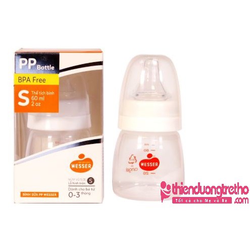 Size S (cắt lỗ tròn) : cho bé 0-3 tháng Size M (cắt chữ Y ) : cho bé 4-6 tháng Size L (cắt chữ Y) : cho bé từ 7 tháng trở lên Size + (cắt dấu + ) : cho bé 3- 18 tháng - Bình sữa PP WESSER là sự kết hợp giữa thiết kế đột phá và chất liệu nhựa Polypropylene, không chứa chất BPA.