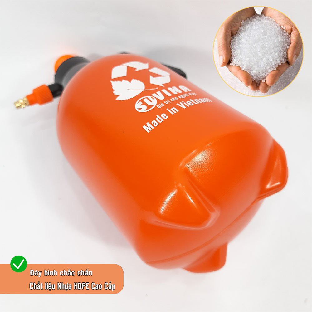 Bình xịt tưới cây SUVINA 2L được sản xuất theo tiêu chuẩn Châu Âu, được trang bị vòi phun bằng đồng mang đến độ bền lâu cho sản phẩm.