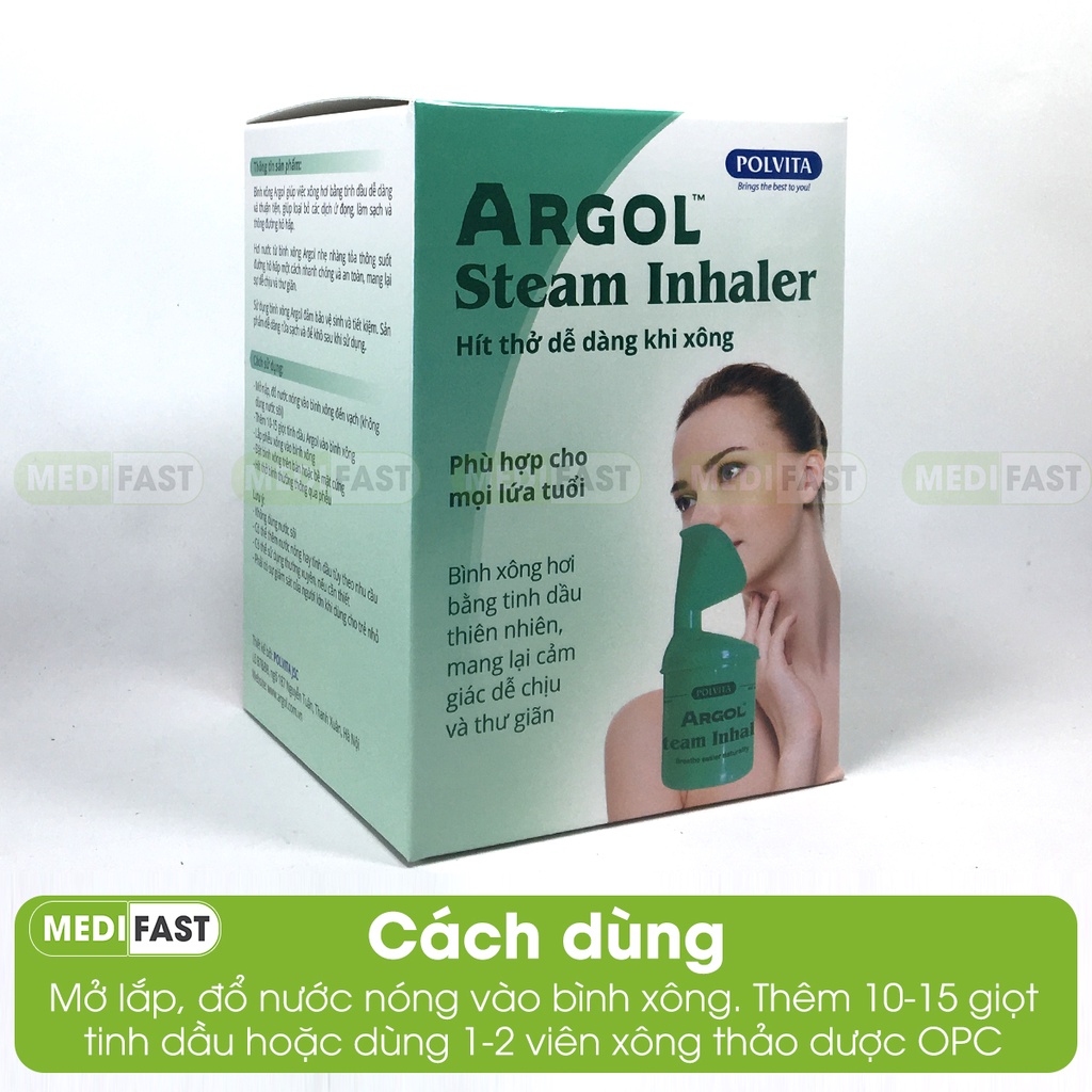 Giới thiệu sản phẩm Bình xông mũi họng Argol : Bình xông mũi họng Argol - bình 350ml Đặc điểm nổi bật: công dụng - Giúp việc xông hơi bằng tinh dầu dễ dàng, thuận tiện. - Giúp loại bỏ các dịch ứ đọng,thông đường hô hấp.