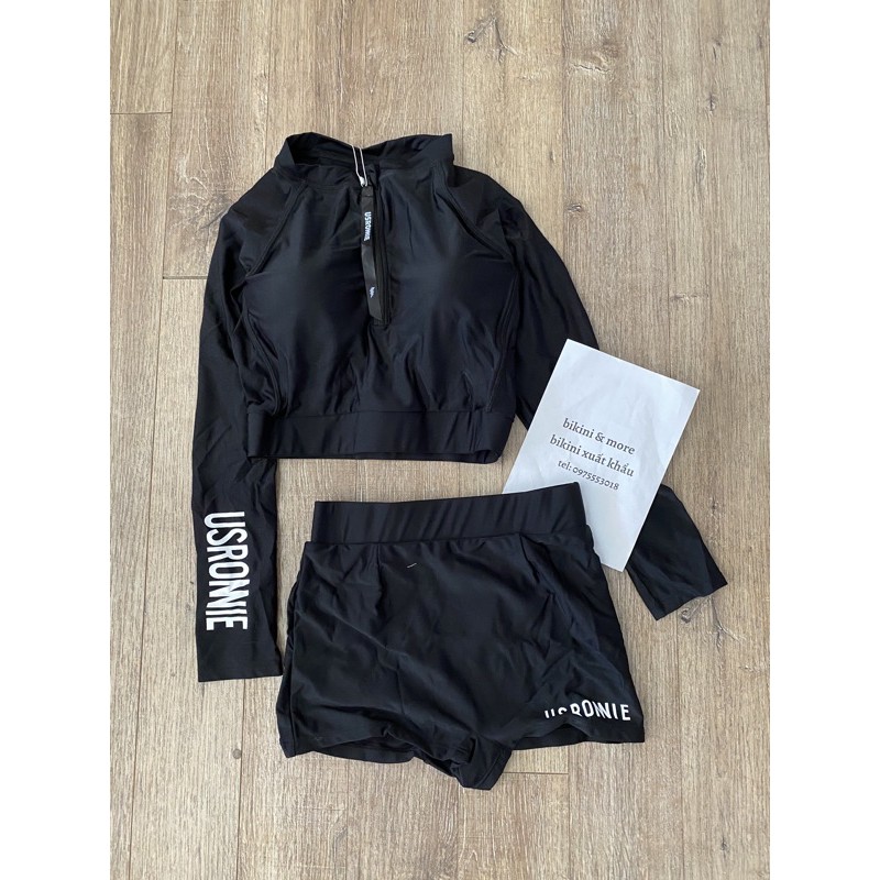 [BKN645] <HÀN> SET BIKINI ĐEN DÀI TAY USRONNIE ÁO KÉO KHOÁ QUẦN ĐÙI KIỂU HÀNGiá STARL
