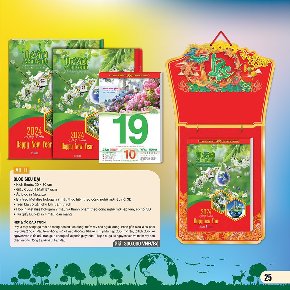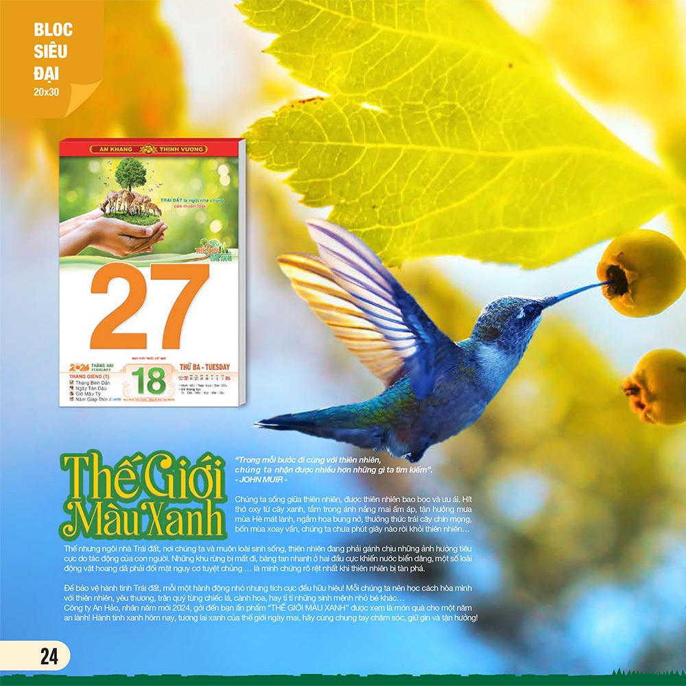 Bloc Lịch 20 x 30 Cm (KT Ruột Lịch) – Giáp Thìn 2024 – Thế Giới Tươi Đẹp (Tặng Lịch Vạn Sự 2024) – Mẫu Mới