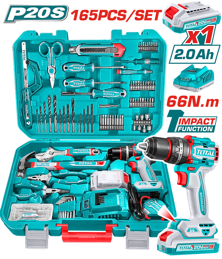 Giới thiệu BỘ 165 MÓN BAO GỒM MÁY KHOAN BÚA KHÔNG CHỔI THAN DÙNG PIN 20V TIDLI20668 TOTAL THKTHP11652 - HÀNG CHÍNH HÃNG