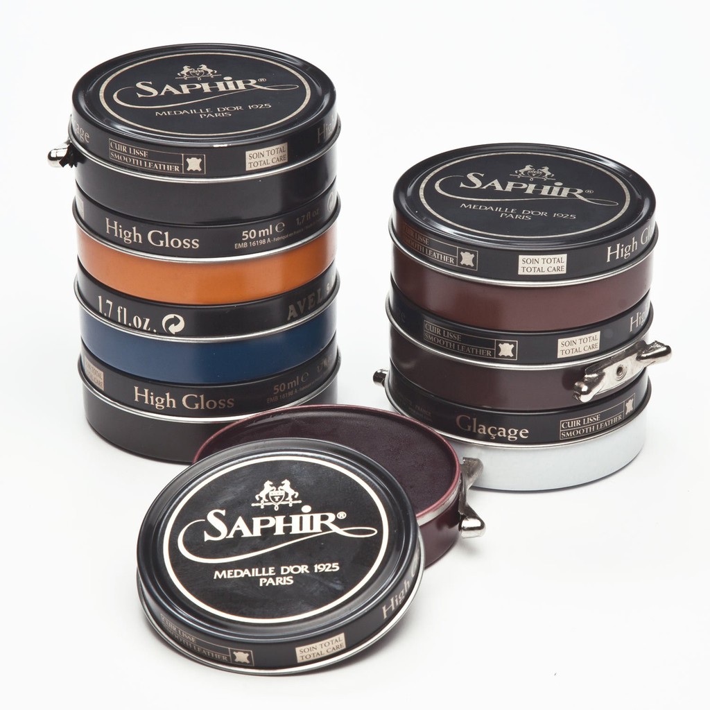 Hướng dẫn sử dụng: Dùng khăn khô vệ sinh bề mặt giày loại bỏ lớp bụi bẩn. Nếu giày quá bẩn có thể dùng khăn ẩm làm sạch sau đó để cho bề mặt giày khô hoàn toàn trước khi tiếp tục. Sử dụng Saphir MDO Lotion làm sạch và dưỡng bề mặt da giày. Lấy 1 lượng sữa vừa đủ thoa theo vòng tròn nhỏ trên bề mặt da, làm sạch kỹ những vùng da bị dính bẩn. Để 3-5 phút cho bề mặt da khô lại. Dùng bàn chải lấy kem MDO lấy 1 lớp Saphir MDO Creme 1925 vừa đủ, thoa lớp kem này theo vòng tròn nhỏ trên bề mặt giày. Thoa đều trên toàn bộ bề mặt da để có 1 lớp kem mỏng trên bề mặt. Chờ từ 3-5 phút để lớp kem thấm hết vào bề mặt da. Saphir MDO Creme 1925 giúp giữ độ ẩm cho da, tránh da bị khô nứt trong quá trình sử dụng. Sử dụng đúng loại màu Creme giúp khôi phục lại màu gốc cho giày của bạn. Khách hàng có thể chọn màu creme đậm tông hơn màu giày để thử nghiệm thay đổi màu cho giày của mình. Sử dụng bàn chải đánh bóng Saphir MDO đánh bóng bề mặt da giày. Đánh kỹ vùng mũi và gót giày để tạo độ bóng cần thiết. Để tăng độ bóng cho đôi giày, ta dùng xi Saphir MDO Pate de luxe. Dùng khăn lấy xi bằng cách quấn khăn trên 2 đầu ngón tay, thoa tròn trên bề mặt xi. Sau đó thoa lớp xi mỏng lên các phần da cần tạo độ bóng. Các phần da này thường là vùng da căng như mũi, gót giày. Thoa đều theo hình tròn nhỏ để tạo lớp xi mỏng. Có thể chấm thêm 1 vài giọt nước và thoa cùng trên bề mặt để tăng độ bóng. Chờ 3-5 phút cho lớp xi thấm vào da. Sử dụng bàn chải hoặc khăn đánh bóng vùng thoa xi đến khi có độ bóng như ý.