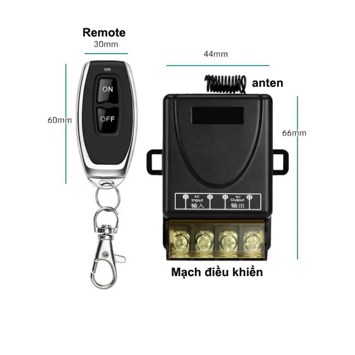+ Sản phẩm gồm: 01 mạch điện + 01 Remote kèm pin
