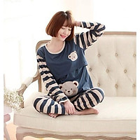Bộ Đồ Bầu Sau Sinh, Bộ Gấu Dài Tay Mặc Nhà Cho Mẹ, Quần Chỉnh Chun, Size Rộng