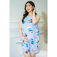 Bộ bầu lửng tay cộc, chất mềm mát cho mẹ bầu mặc nhà freesize 43-68kg