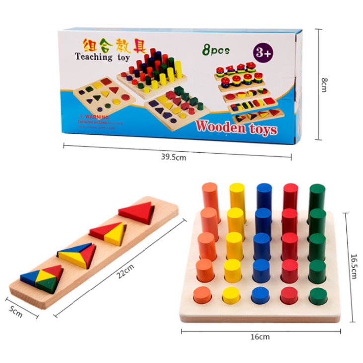 🌻 TIỆN ÍCH: - Bộ giáo cụ montessori 8 món dành cho bé từ 3-6 tuổi kích thích trí thông minh của bé - Bộ Giáo cụ Montessori bộ 8 món Chi tiết sản phẩm rất đơn giản giúp bé Phát triển tư duy logic và trí tưởng tượng phong phú, giúp trẻ: - Học khái niệm hình học và hình khối: tròn, tam giác, vuông, hình trụ, hình hộp chữ nhật, hình lập phương. - Học khái niệm: cao - thấp, ngắn - dài, to - bé. - Học số đếm (khi đếm hình) - Học phân số - Lắp ghép sáng tạo - Học phép chia, giúp bé tăng khả năng hoạt động, thúc đẩy sự phát triển của tay, cảm quan được khối hình học, phối hợp mắt và tư duy logic... Ba mẹ chơi cùng và dạy bé cách lắp ráp từng hình khối vào những trụ tương ứng, vừa ráp vừa dạy cho bé đây là hình gì, màu gì, giúp cho bé vừa chơi vừa học tăng khả năng nhận biết cho bé - Là công cụ dạy trẻ học cách giải quyết vấn đề 2 vận động, rèn luyện sự khéo léo của đôi tay, sự linh hoạt giữa tay và mắt - Đây là Món quà ý nghĩa đồ chơi gỗ thông minh an toàn cho bé!