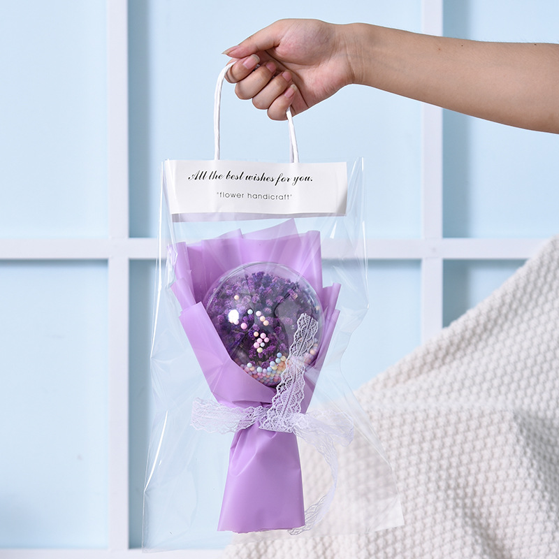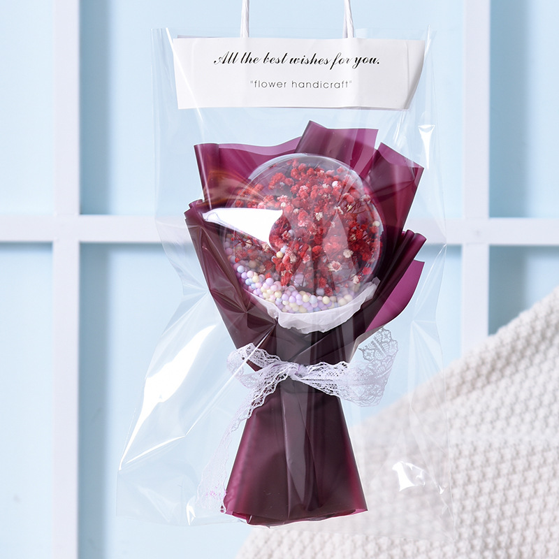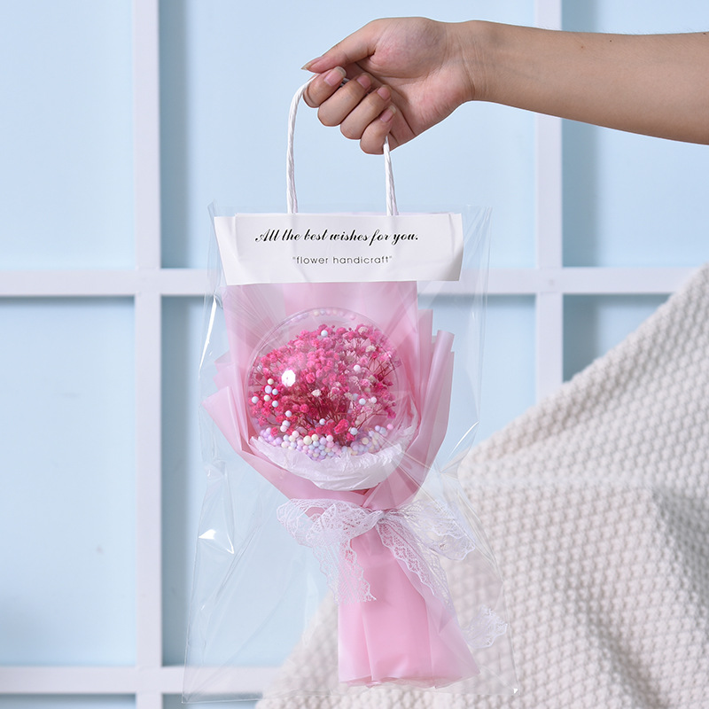 Bó hoa khô bông bi có túi xách siêu xinh- Quà tặng valentine, 8/3