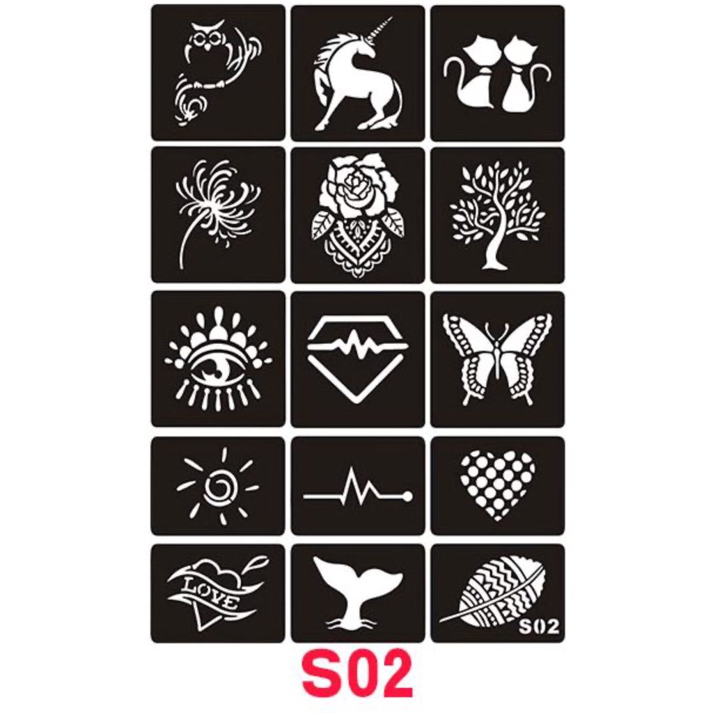 Phụ Kiện Thời Trang > Phụ kiện thêm > Hình xăm dán || BỘ KHUÔN DECAL HENNA DÁN MÃ S02