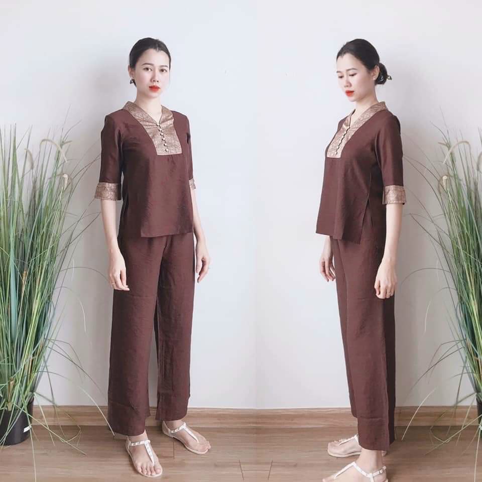 Mẫu quần áo Phật Tử chất liệu lụa Linen tơ tằm cao cấp mềm mại nhẹ nhàng HOT TREND 🎉🎉 SIÊU PHẨM 🎉🎉🎉🎉PHÁP PHỤC NỮ VẢI LỤA Bộ Phật tử áo lam mềm mịn, họa tiết phối vân đá sang trọng. Áo thiết tà trước qua bụng dưới, tà sau qua vòng 3 tạo nên sự thanh lịch kín đáo không lo lộ hở. Cổ chữ Y nhỏ xinh đính cúc ngọc trai sang trọng. Hứa hẹn sẽ là mẫu được chị em ưa chuộng nhất trong năm nay. BỘ ĐI LỄ hình ảnh/video quay chụp trực tiếp tại cửa hàng Sen Hồng ------------------------------ 🆘️ĐẬP TAN PHÍ SHIP!!!🆘️ 🍍 Mã SP: B1 🍍 Hình ảnh chi tiết bộ đồ lam đi chùa là Shop tự chụp + Video shop tự quay. 🍍 Miêu tả: Bộ đồ lam đi chùa gồm cả áo và quần, vải lenin lụa quần có túi 2 bên, hông may rộng thoải mái cho các chị mặc đi chùa, hành thiền, làm từ thiện, tập khí công v.v... 🍍 Size: S/M/L 🍍 Màu sắc : lam, rêu, socola, xanh cốm, xanh than