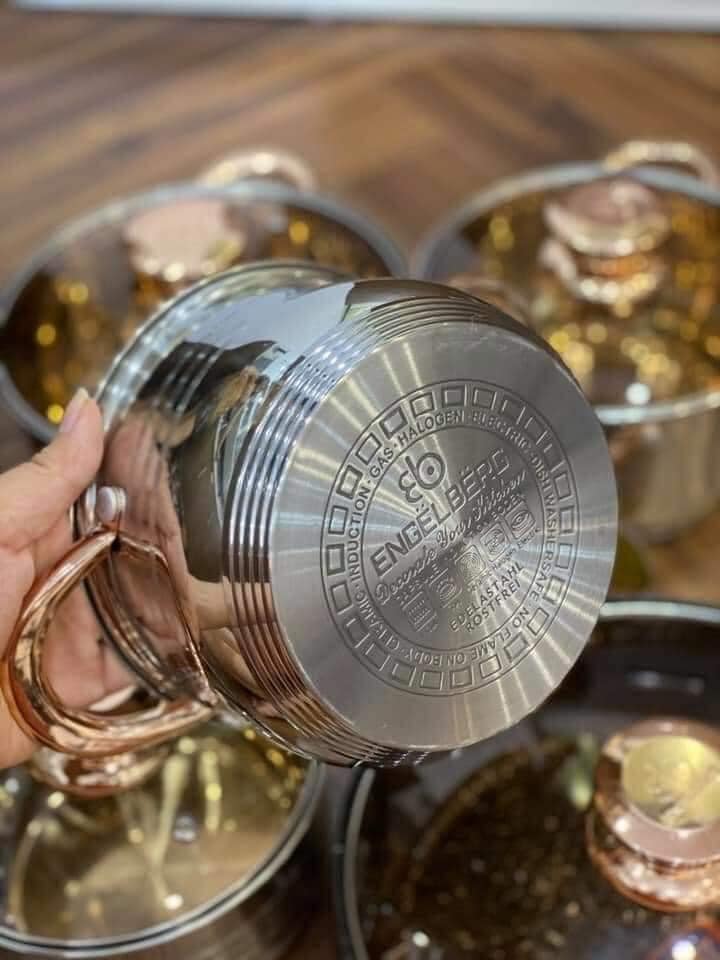 - Dưới đáy nồi đều có khắc tên nhãn hiệu ENGELBERG (một nhãn hiệu nổi tiếng của Đức về gia dụng)