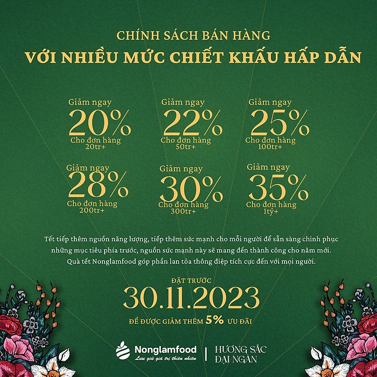 Với mỗi phần quà trao đi Nonglamfood mong muốn gửi đến trọn vẹn những vẻ đẹp của mùa mùa xuân đơm hoa kết trái, mỗi hương vị thiên nhiên trong từng thức quà đều được Nonglamfood gói ghém đầy ắp những yêu thương, để đến tay khách hàng không đơn thuần chỉ là quà Tết mà còn là tất cả câu chuyện của mùa xuân rực rỡ.