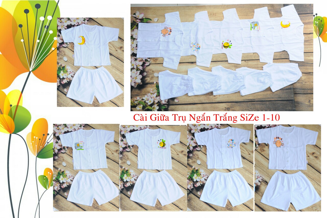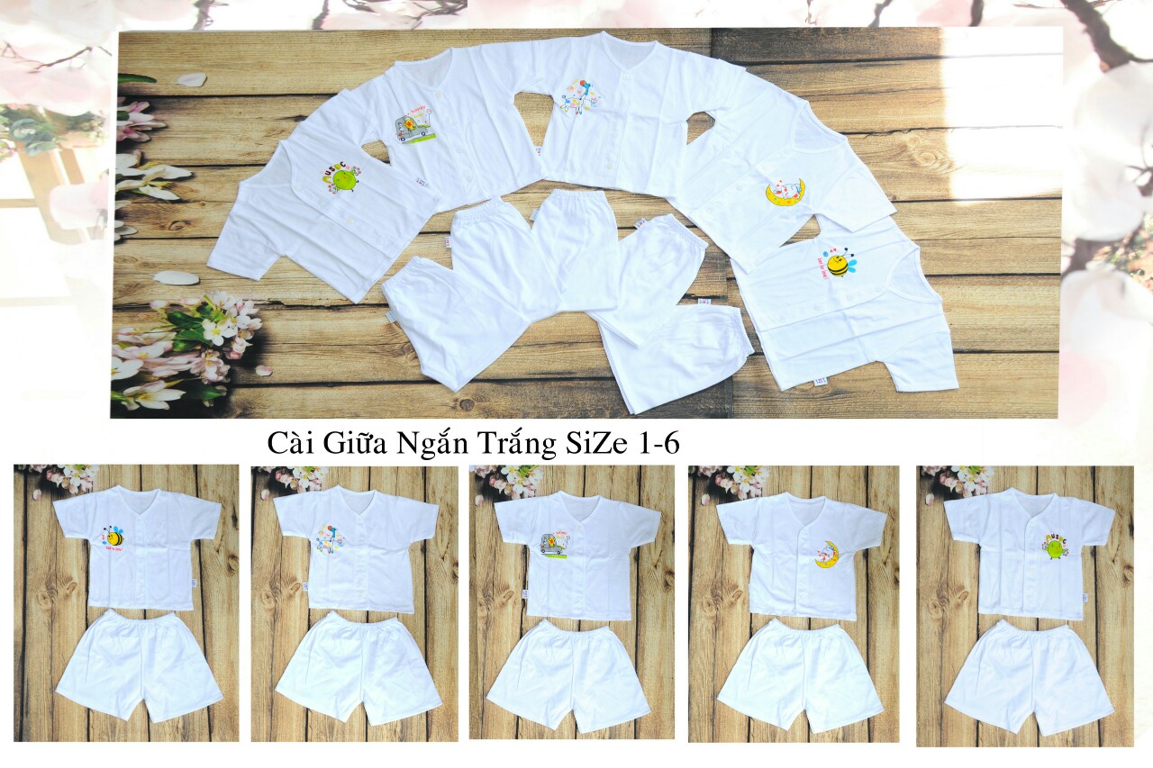 *** BỘ QUẦN ÁO EM BÉ KIỂU NÚT CÀI GIỮA TAY NGẮN (TRẮNG) - với 100% chất liệu được làm bằng cotton mềm mịn, vải có tính năng co giãn, thấm hút tốt giúp các bé được thoải mái, mát mẻ và không khó chịu trong khi mặc.