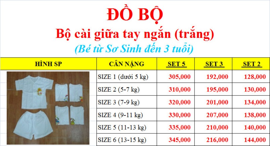 *** Các Mom tham khảo trong hình bảng giá để chọn cho bé các size phù hợp nhất nha !!!