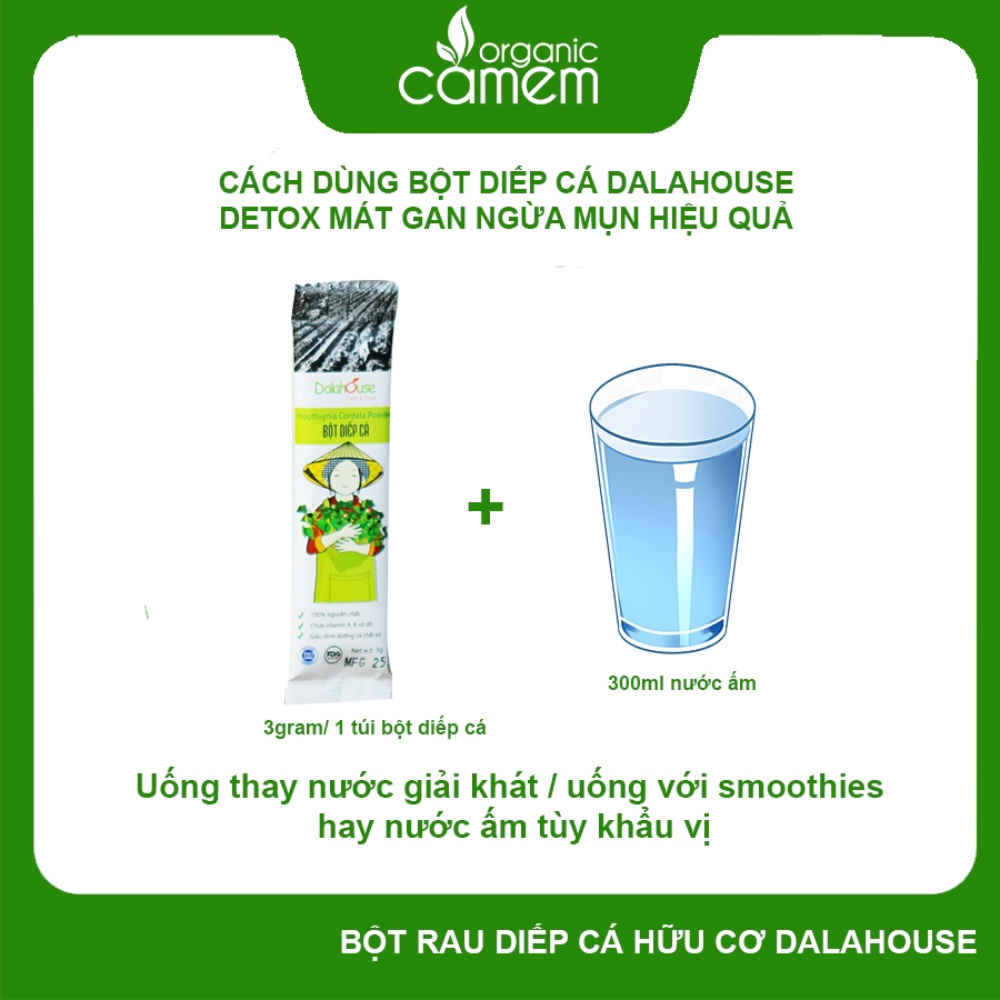 Bột Rau Diếp Cá DalaHouse sản xuất từ 100% rau diếp cá tươi được trồng và thu hoạch tại trang trại organic của Dalahouse tại Đơn Dương, Lâm Đồng. Chúng tôi sử dụng công nghệ sấy lạnh hiện đại tiêu chuẩn Châu Âu và công nghệ nghiền thực phẩm ở nhiệt độ thấp giúp bảo toàn các enzym và chất dinh dưỡng của rau củ, đảm bảo uy tín về chất lượng cũng như nguồn gốc với quy trình khép kín đạt chứng nhận FDA. Sản phẩm phù hợp bổ sung rau củ cho cả gia đình ngay cả khi bận rộn.