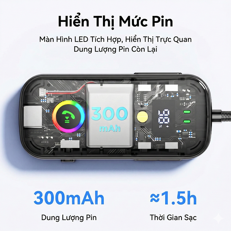 Màn hình LED hiển thị pin % – Theo dõi pin trực quan, tự tắt sau 5 giây