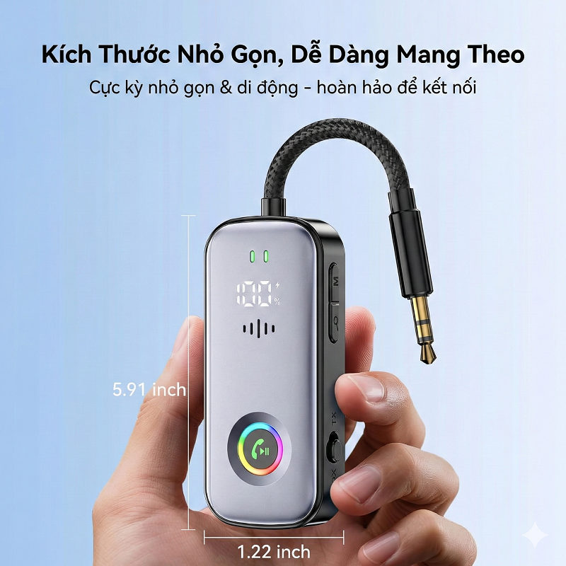 Bộ thu phát Bluetooth 5.2 giúp biến loa, ampli, TV, hệ thống âm thanh có dây thành thiết bị không dây hiện đại. Hỗ trợ 2 chế độ RX (nhận tín hiệu) và TX (phát tín hiệu) chỉ với một nút bấm, sử dụng linh hoạt trong gia đình, ô tô, phòng gym, máy bay hoặc khi xem TV ban đêm bằng tai nghe Bluetooth.