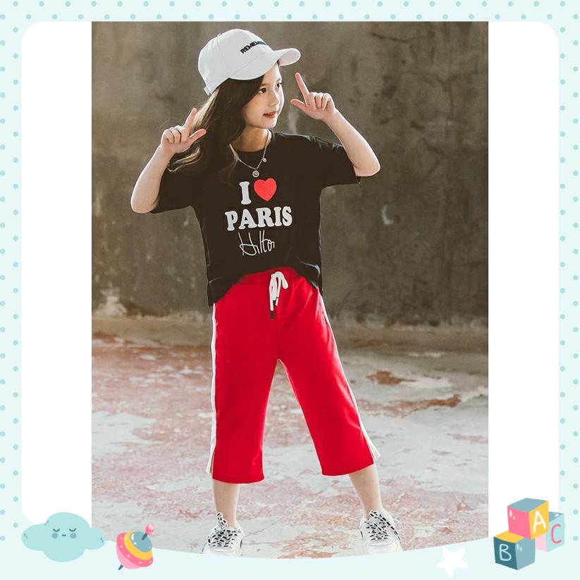 Sét bộ I ❤️ PARIS thật cưng cho bg mặc nhà, đi học, đi chơi đều xinh - Nguyên sét thun cotton chính phẩm co giãn 4c. Hình in sét nét. Áo fom rộng - kết hợp cùng quần lửng ống rộng sành điệu. Quần may phối 2 bên năng động, ống xẻ tà cách điệu.