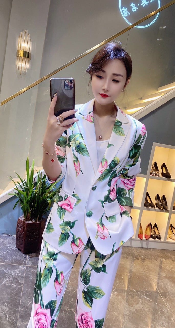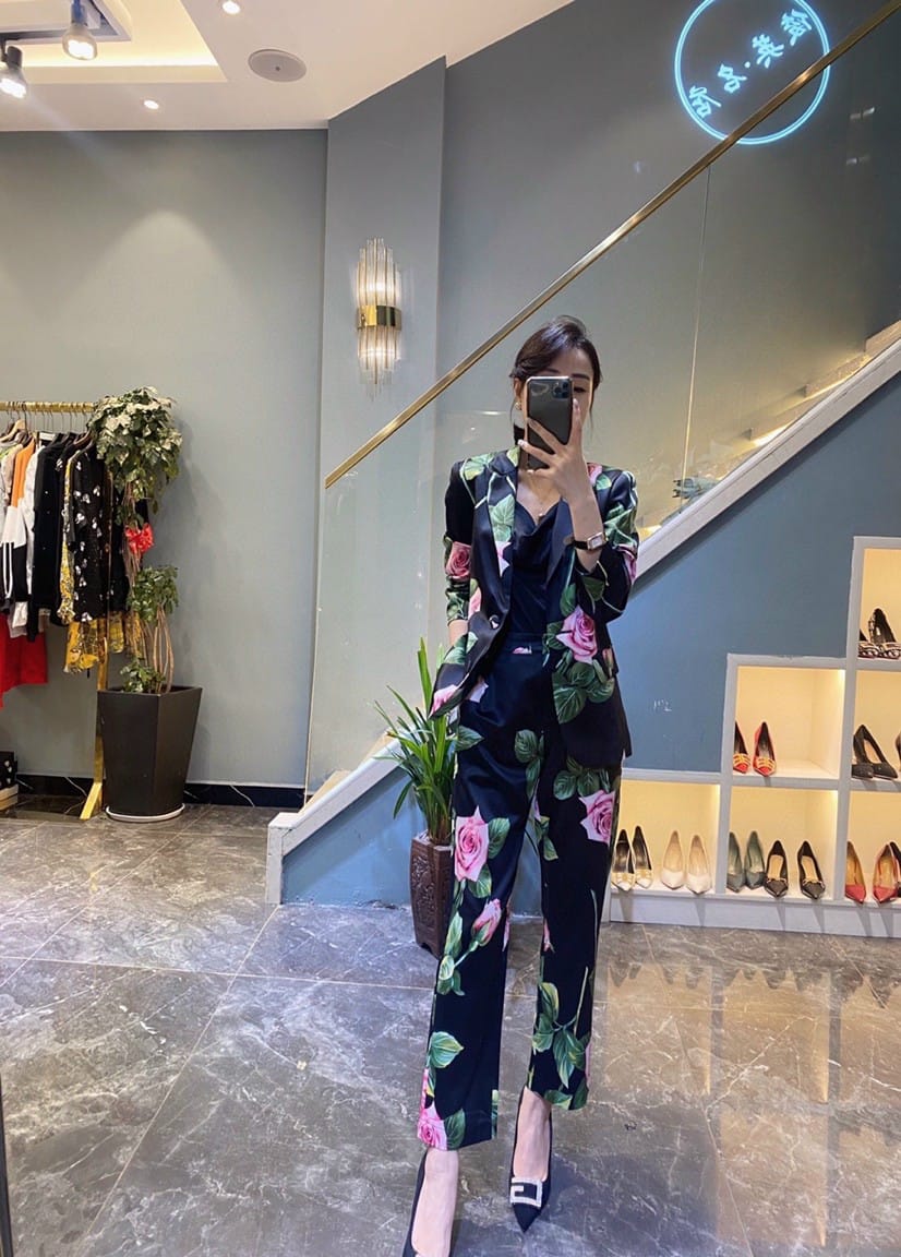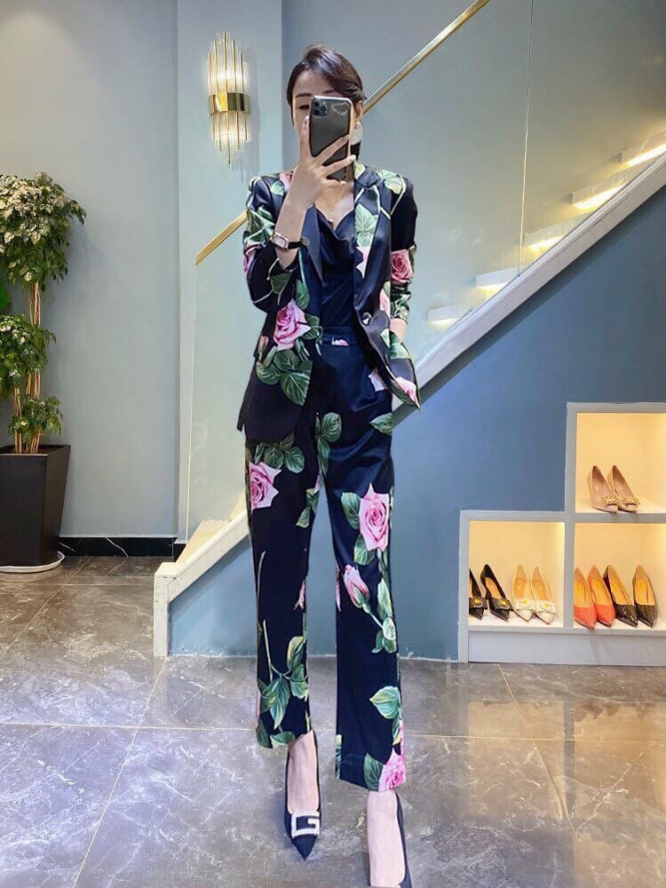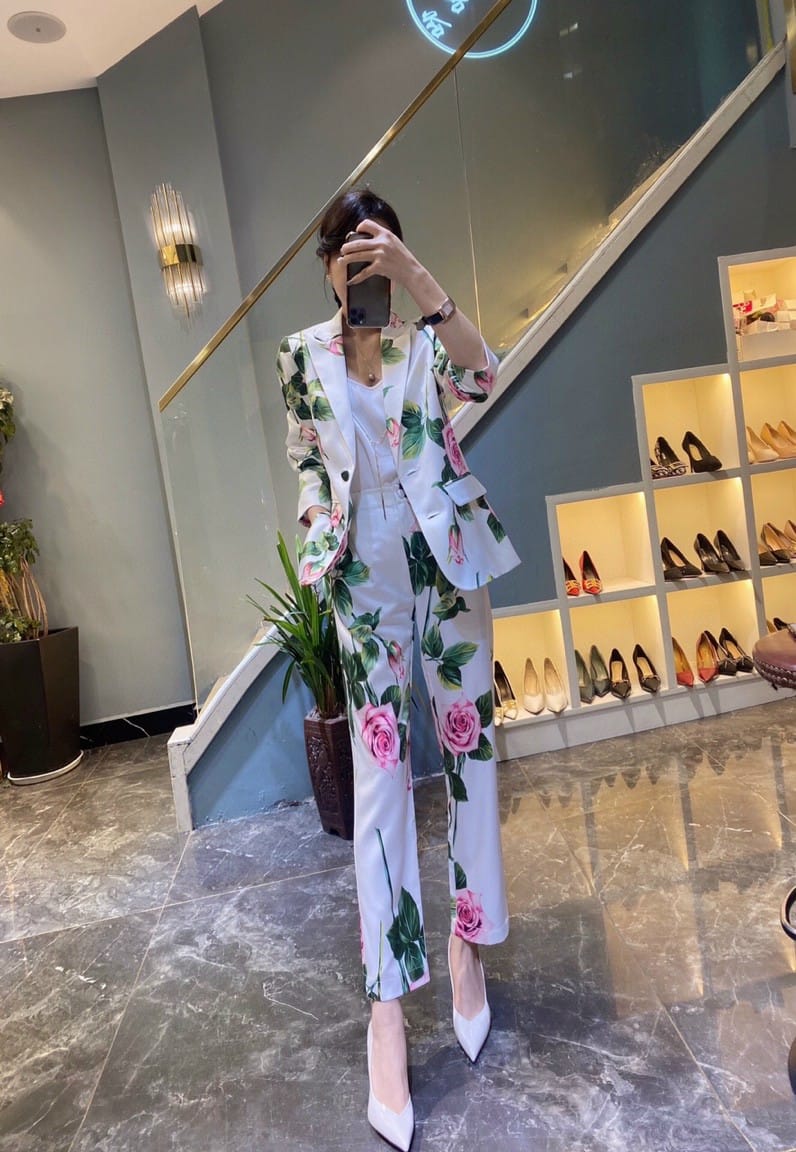 BỘ VEST NỮ TAY LỠ HOẠ TIẾT HOA HỒNG