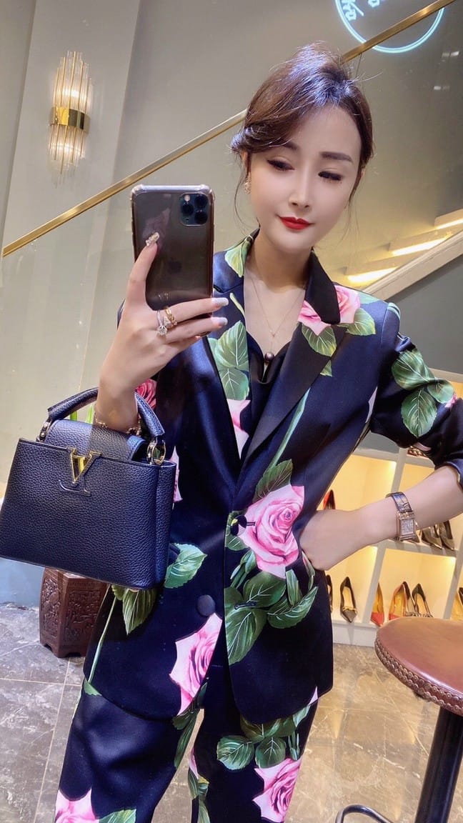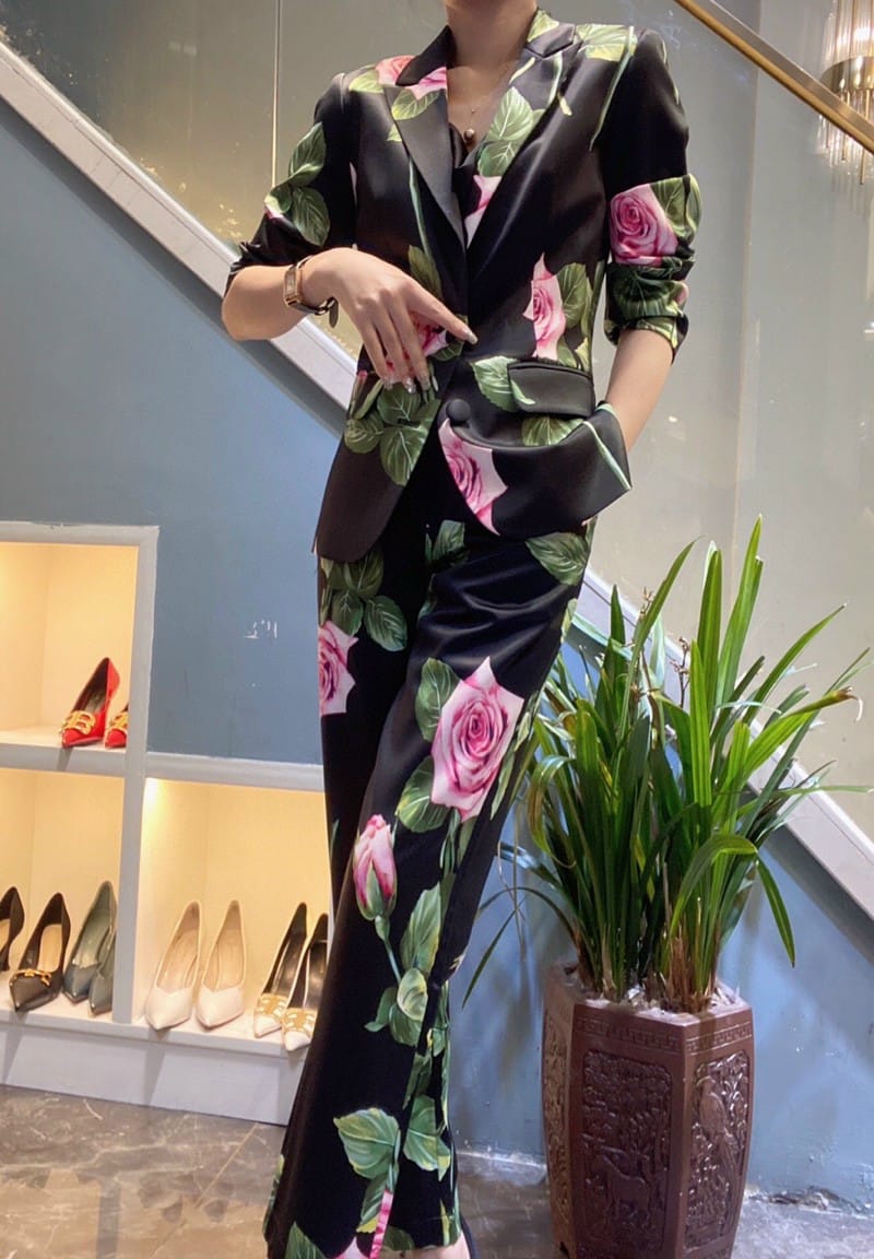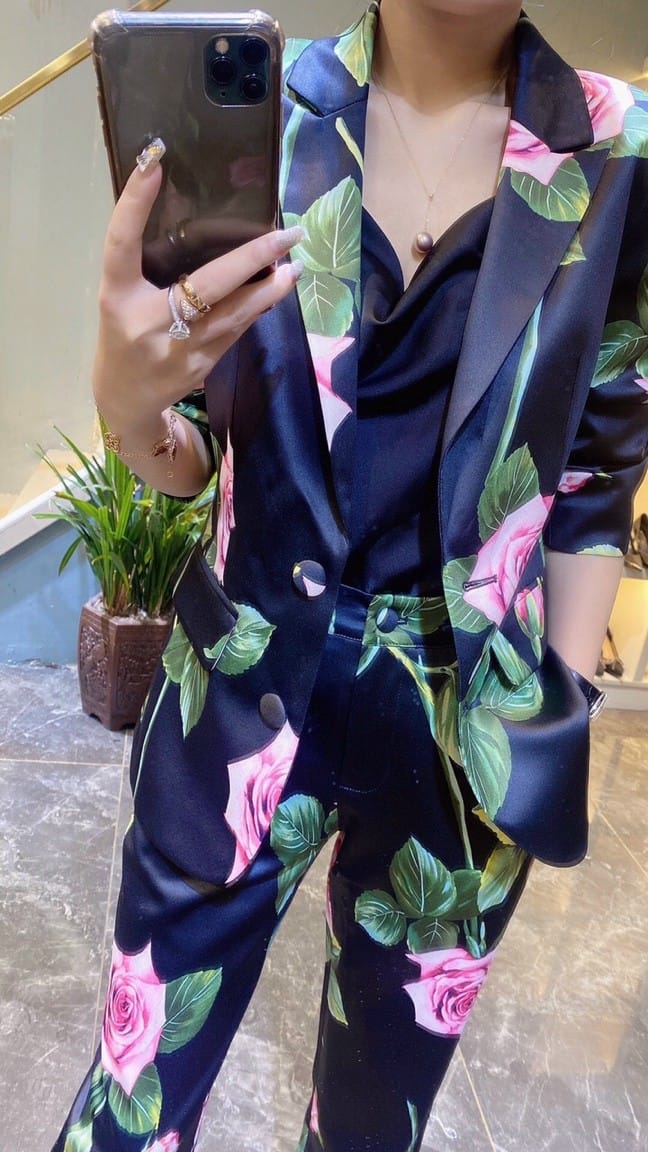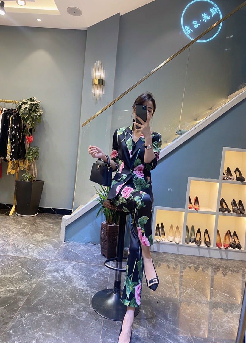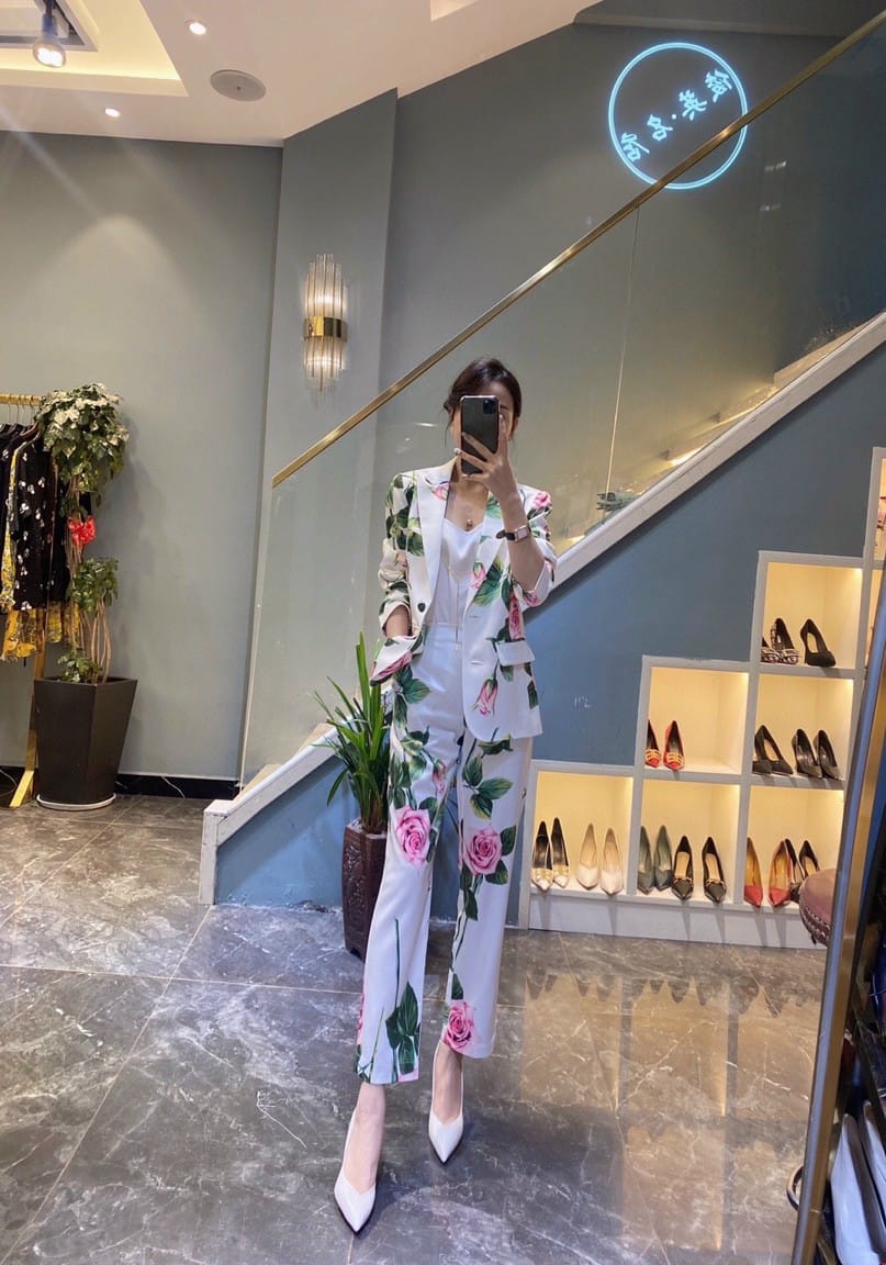BỘ VEST NỮ TAY LỠ HOẠ TIẾT HOA HỒNG