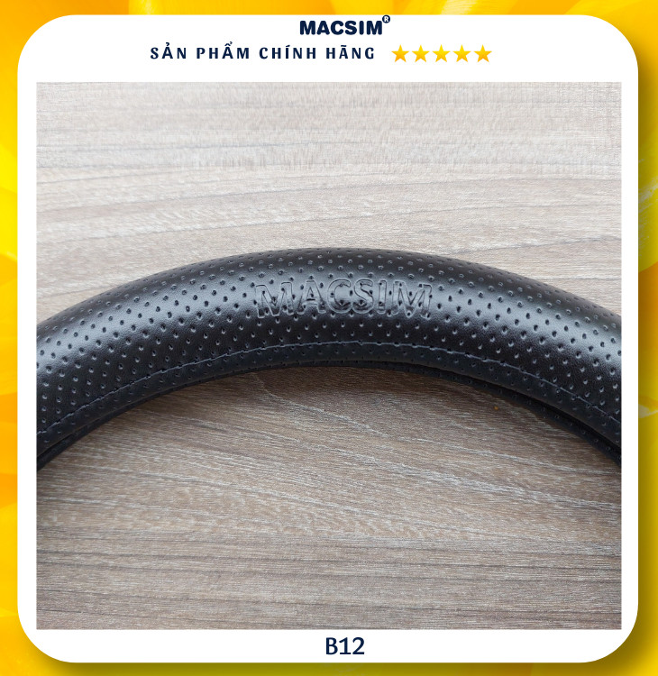 Bọc vô lăng cao cấp Macsim mã Dcut B12 màu đen chỉ đen chất liệu da thật 100%,- chất liệu da thật 100%, lõi ruột vô lăng được sản xuất từ silicon cao cấp mềm mại dẻo dai không gây hại cho vô lăng nguyên bản theo xe, an toàn cho sức khỏe người sử dụng. Bọc vô lăng Macsim khâu tay thủ công size M phù hợp các loại xe.