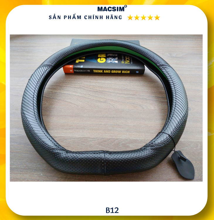 Bọc vô lăng cao cấp Macsim mã Dcut B12 màu đen chỉ đen chất liệu da thật 100%,- chất liệu da thật 100%, lõi ruột vô lăng được sản xuất từ silicon cao cấp mềm mại dẻo dai không gây hại cho vô lăng nguyên bản theo xe, an toàn cho sức khỏe người sử dụng. Bọc vô lăng Macsim khâu tay thủ công size M phù hợp các loại xe.
