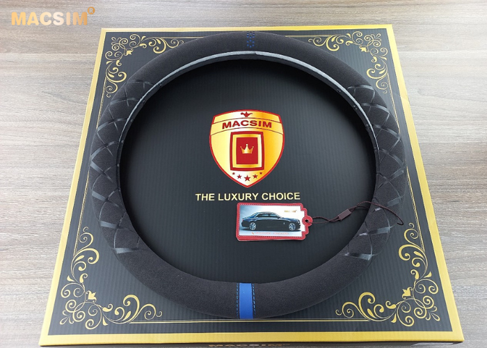 Bọc vô lăng cao cấp Macsim mã 8858 màu đen + xanh blue