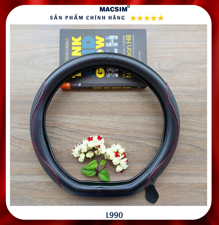 Bọc vô lăng cao cấp Macsim mã Dcut mã L990 màu đen chỉ đỏ chất liệu da thật 100%,- chất liệu da thật 100%, lõi ruột vô lăng được sản xuất từ silicon cao cấp mềm mại dẻo dai không gây hại cho vô lăng nguyên bản theo xe, an toàn cho sức khỏe người sử dụng. Bọc vô lăng Macsim khâu tay thủ công size M phù hợp các loại xe.