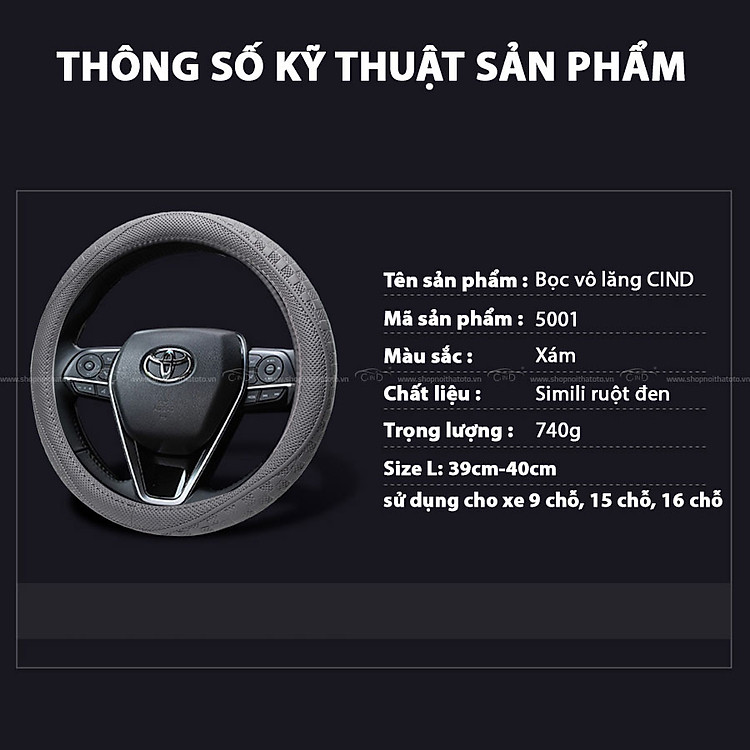 Hướng dẫn sử dụng và bảo quản Bọc vô lăng CIND 5001 size L màu xám