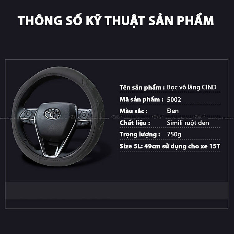 Hướng dẫn sử dụng và bảo quản Bọc vô lăng CIND 5002 size 5L màu đen
