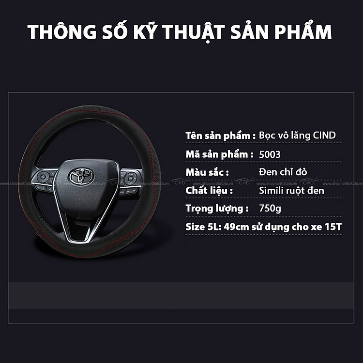 Công dụng của Bọc vô lăng CIND 5003 size 5L màu đen chỉ đỏ