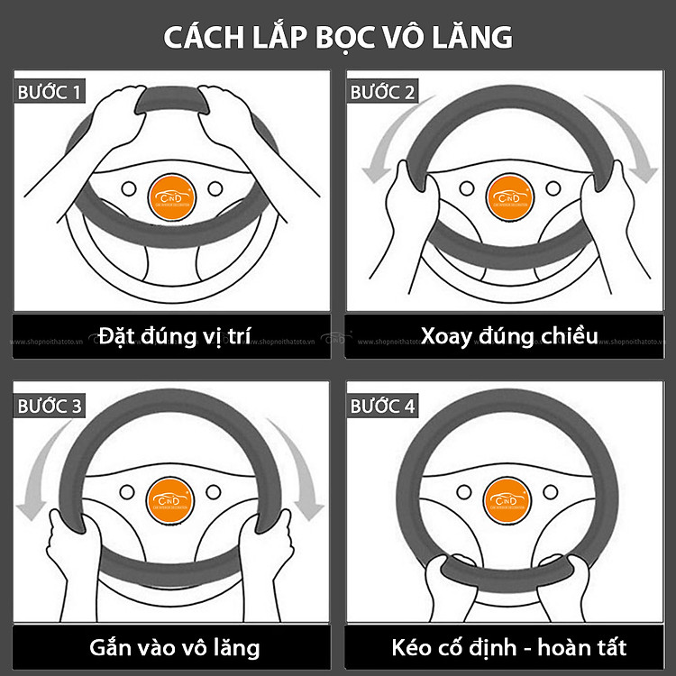 - Hướng dẫn sử dụng: Bọc bên ngoài vô lăng.