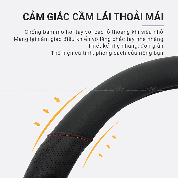 - Bọc vô lăng cao cấp CIND S048 size M màu đen sử dụng chất liệu cao cấp, mang đến sự dễ chịu nhất đến người sử dụng. Sản phẩm tạo cảm giác mềm mại, dễ chịu không gây thô cứng, đau nhức tay hay gây trơn trượt mồ hôi khi lái xe trong thời gian dài. Lỗ thoáng khí trên tay cầm giúp hạn chế đổ mồ hôi gây nhớp nháp khi lái xe.