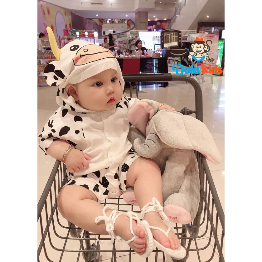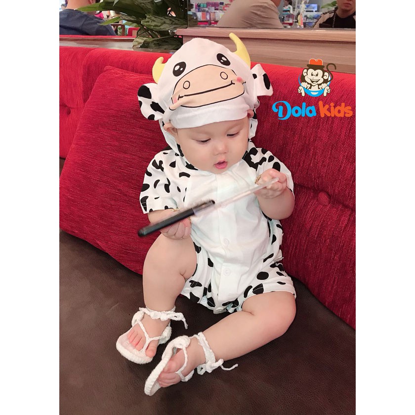 Giới thiệu Body hình thú cho Bé hình Bò Sữa cotton ngắn tay có mũ cho bé 0-3 tuổi