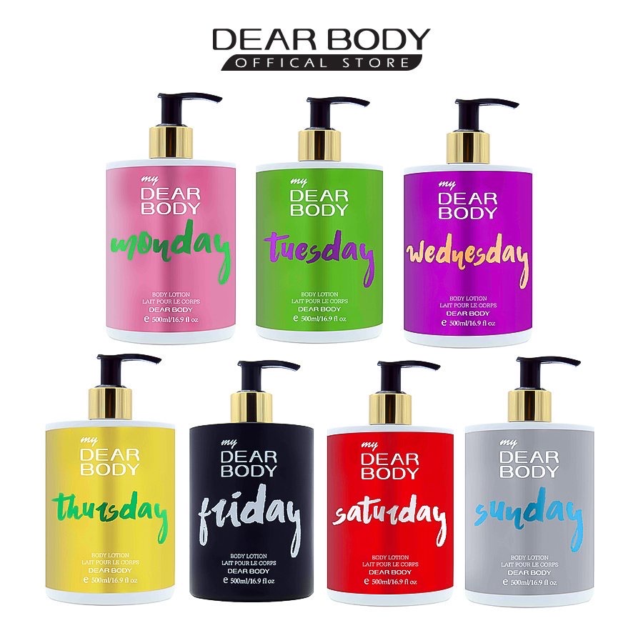 Sữa Dưỡng Thể Nước Hoa 7 Ngày DEAR BODY Body Lotion 500ml với công thức dưỡng da độc đáo từ bơ hạt Macca, chiết xuất lô hội và, vitamin E giúp bảo vệ, nuôi dưỡng cung cấp dưỡng chất và bổ sung độ ẩm cho làn da suốt cả ngày.