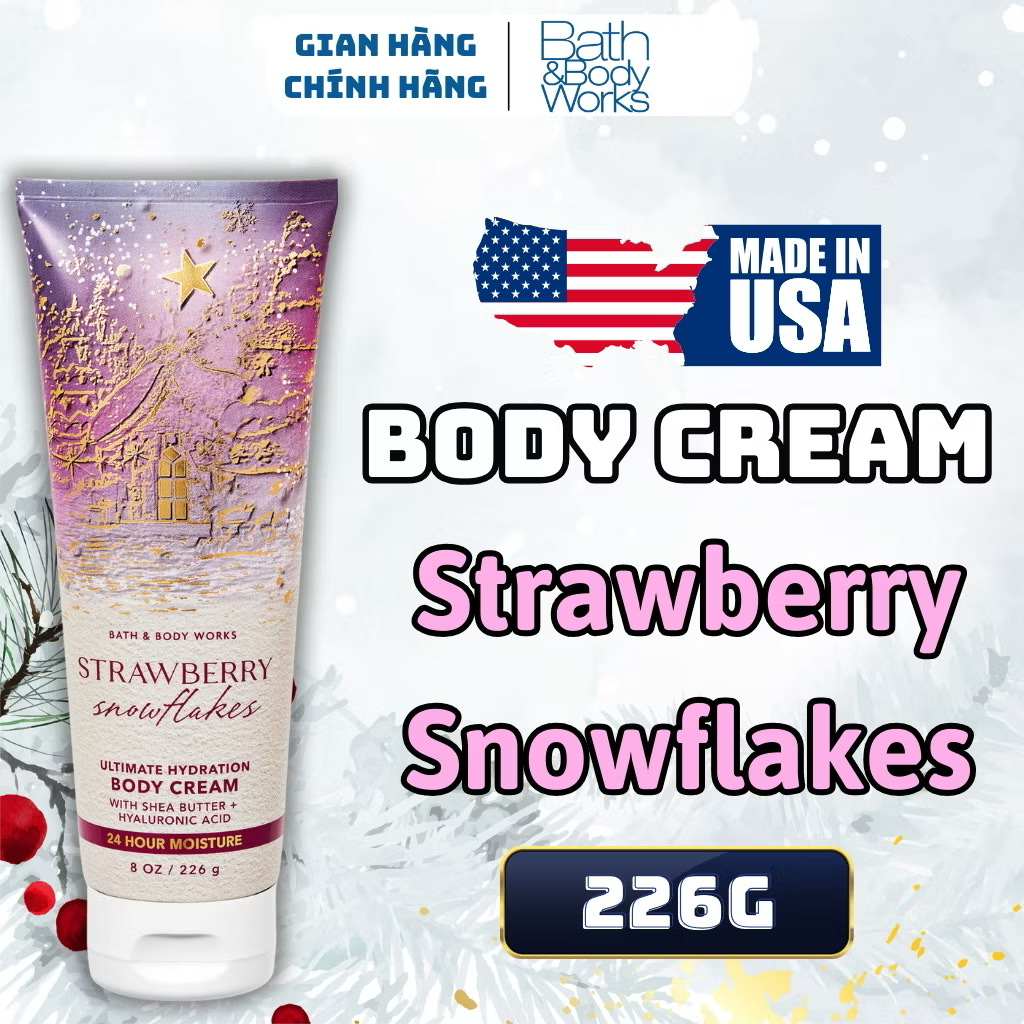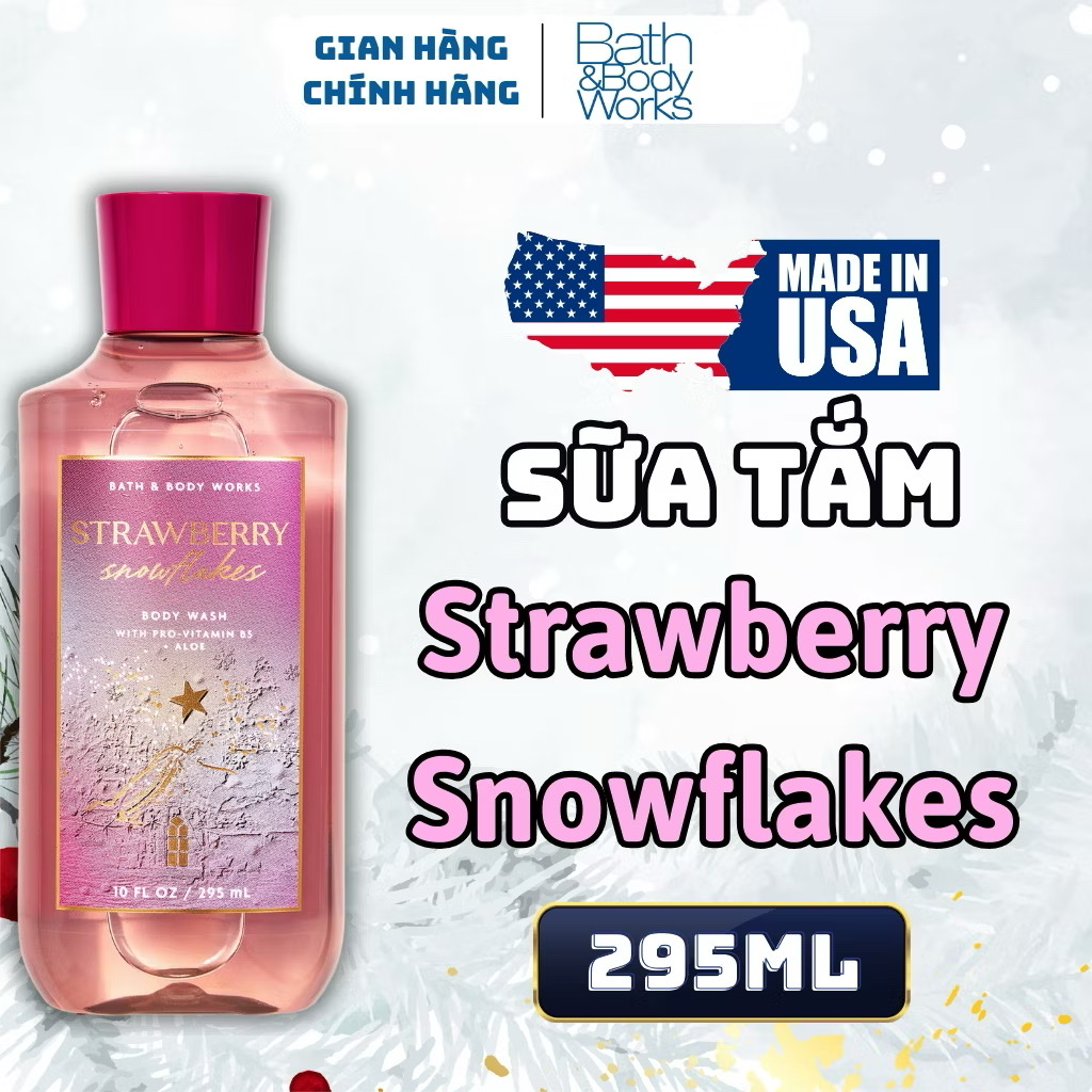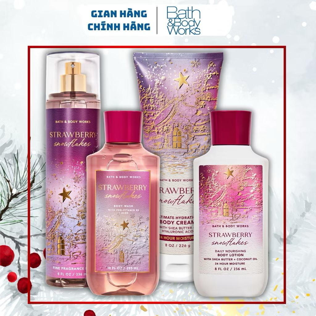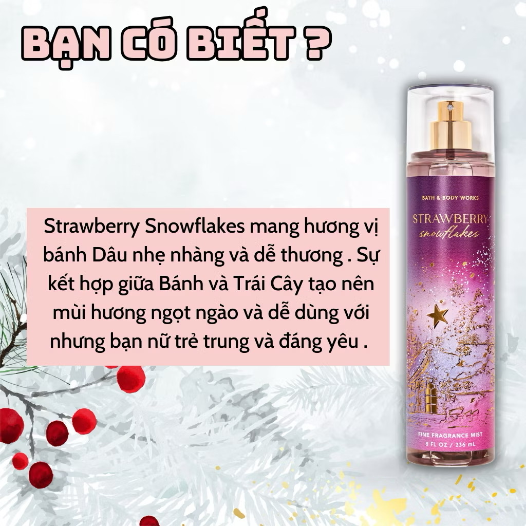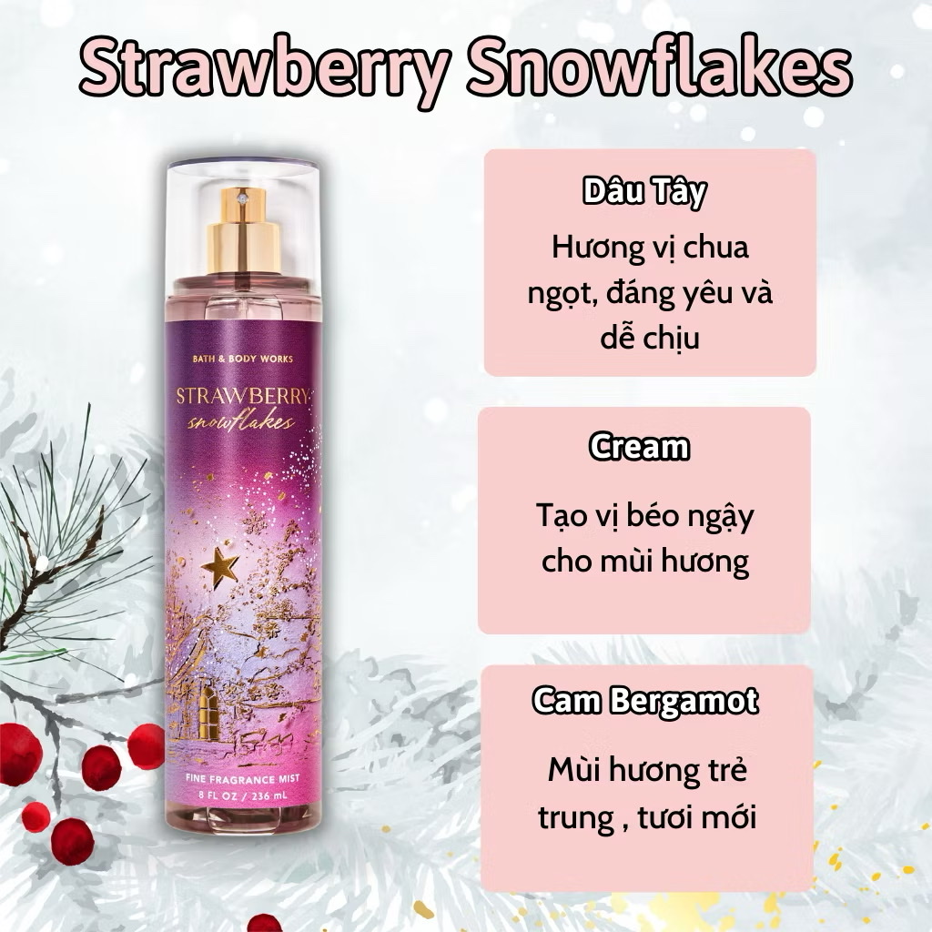 Body Mist Bath And Body Works Nam Nữ Chính Hãng Strawberry Snowflakes, Xịt Thơm Body Toàn Thân Hương Nước Hoa 236ml