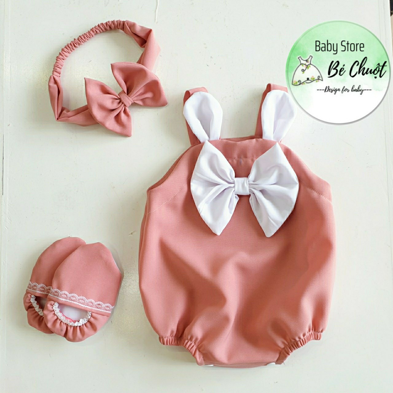 BODY CHO BÉ GÁI SƠ SINH TAI THỎ MÀU HỒNG NƠ TRẮNG
