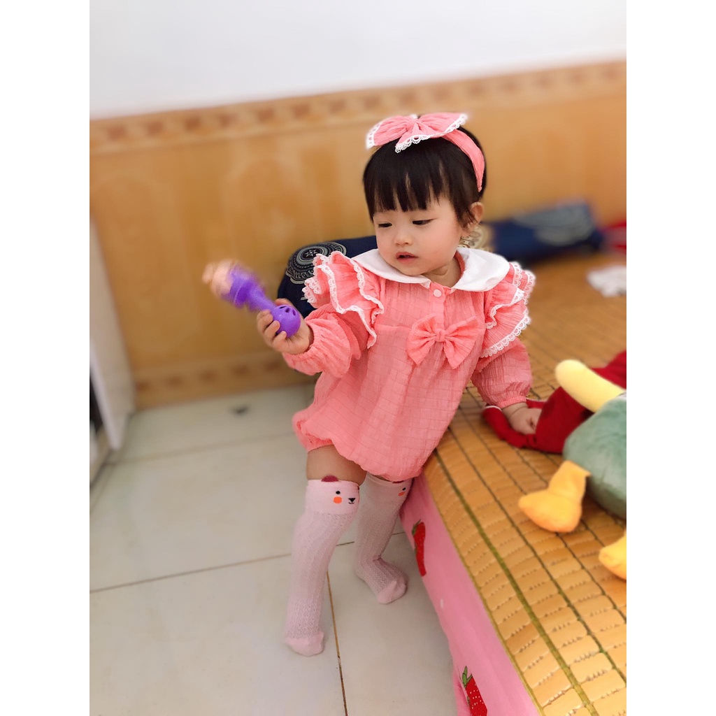 Thời trang trẻ em & trẻ sơ sinh > Quần áo trẻ em > Bộ đồ liền thân || Bodysuit cho bé Nina Kids Boutique Đồ sơ sinh em bé gái Màu hồng Kèm turban nơ Size 0m 24m