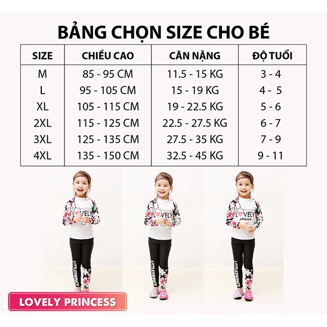 ➡️Size: M - 4XL Size M (3-4 tuổi, cao 85-95cm, nặng 11,5-15kg) Size L (4-5 tuổi, cao 95-105cm, nặng 15-19kg) Size XL (5-6 tuổi, cao 105-115cm, nặng 19-22,5kg) Size 2XL (6-7 tuổi, cao 115-125cm, nặng 22,5-27,5kg) Size 3XL (7-9 tuổi, cao 125-135cm, nặng 27,5-35kg) Size 4XL (9-11 tuổi, cao 135-150cm, nặng 32,5-45kg) ➡️Màu sắc: Trắng phối hoa tay