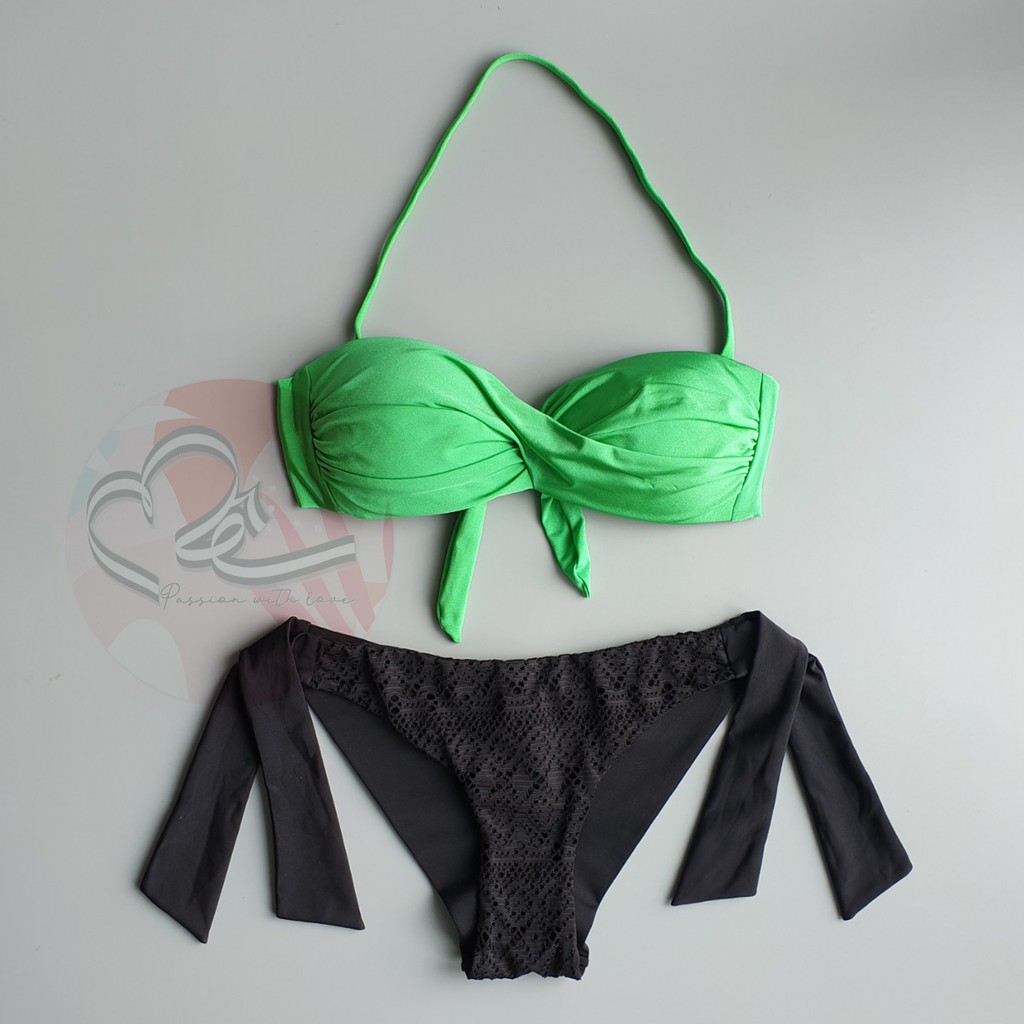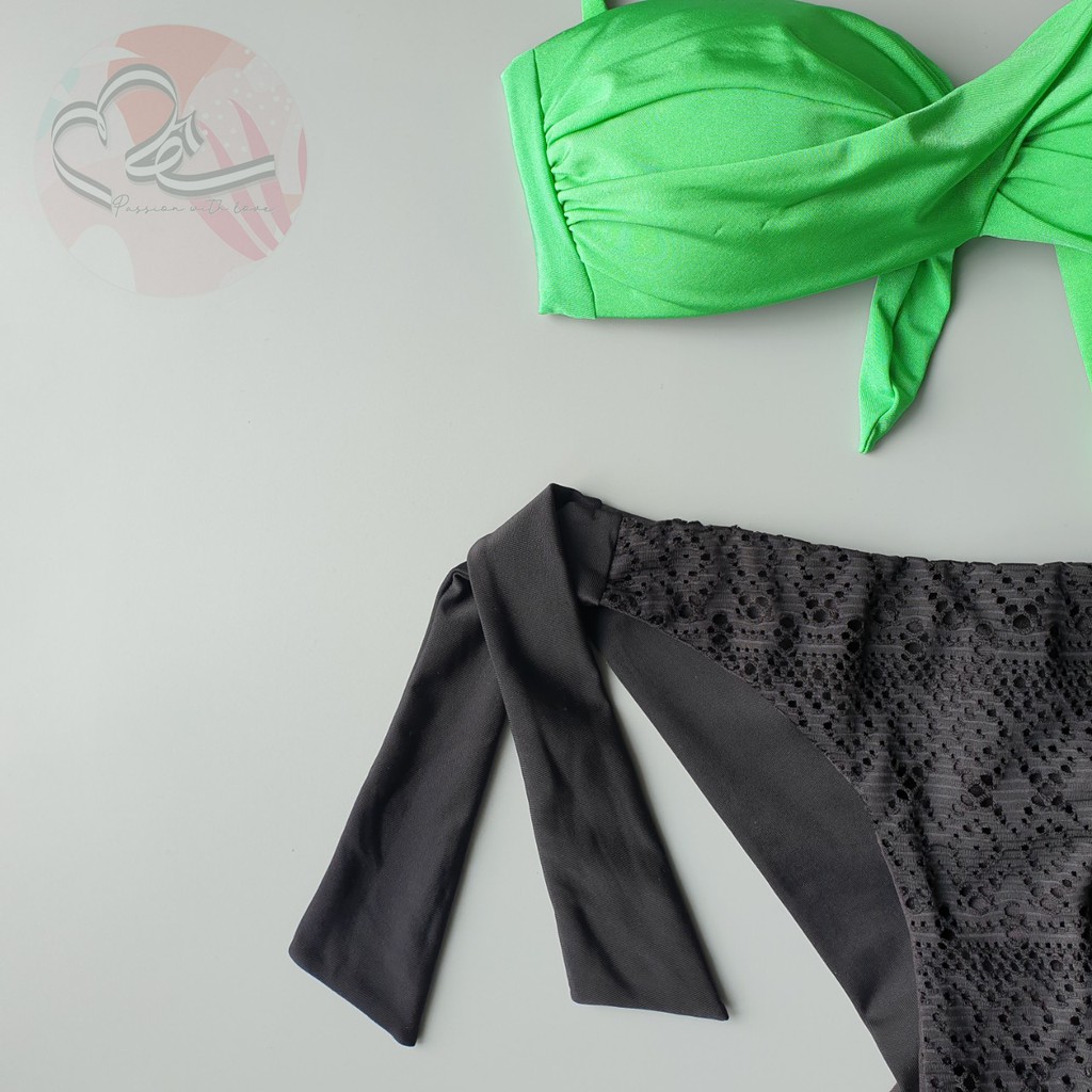 Giới thiệu Bộ bơi hai mảnh áo quây lụa phối quần đan lưới cột đây GP xuất khẩu Ý