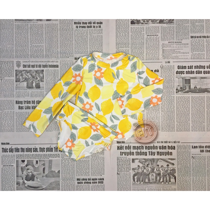 - KID2MV2CAR: bộ đồ bơi 2 mảnh dài tay cổ tròn, quần tam giác viền bèo đáng yêu, họa tiết trái chanh vàng bông hoa lá dễ thương ngây thơi tươi mát, không khí mùa hè. CHO 18 THÁNG ĐẾN 5 TUỔI