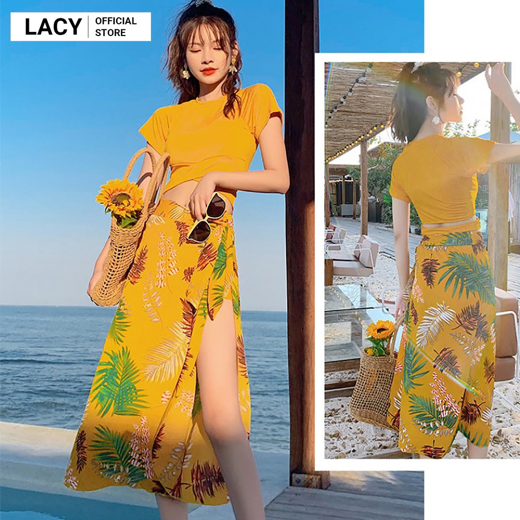 Giới thiệu Đồ Bơi Nữ 3 mảnh Áo tắm Croptop có Tay Quần Bơi Đùi Kèm Chân Váy Voan Họa Tiết Dứa Mùa Hè Trẻ Trung B155 LACY