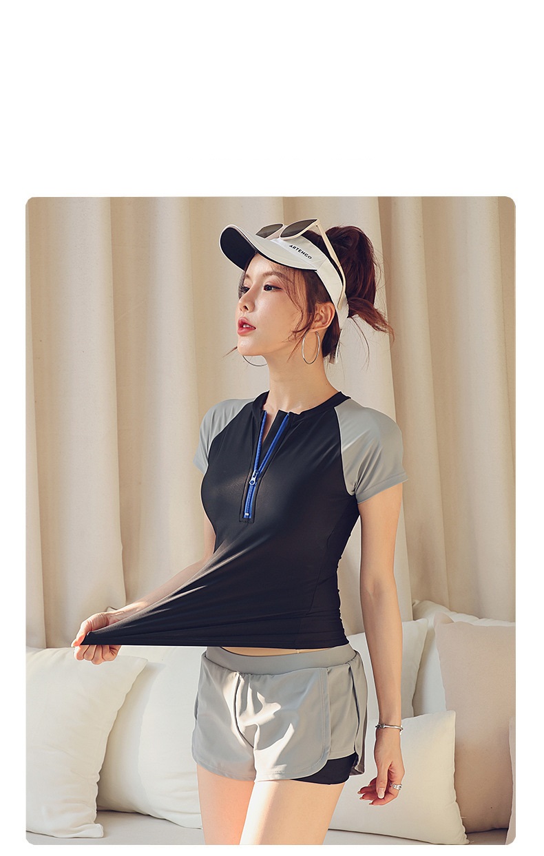 Bộ SP 2 mảnh mặc đi biển làm từ chất chất liệu thun lạnh co dãn, chất dày thoải mái giặt máy mà không lo vải nhão.