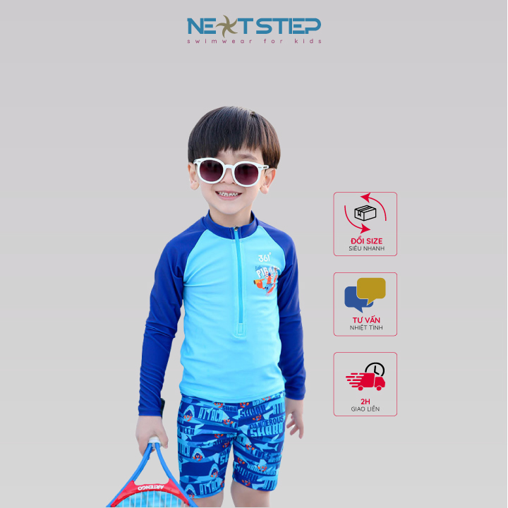 ✓ Đồ bơi được thiết kế tay dài giúp giữ ấm và che nắng cho bé