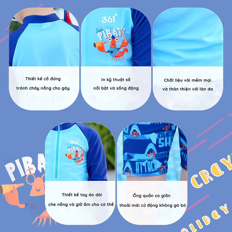 ✓ Đồ bơi cho bé trai dài tay quần áo rời, dây khóa phía trước dễ mặc, kiểu dáng năng động.
