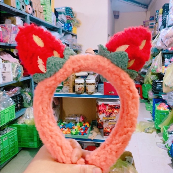 Giới thiệu Bờm Cài Tóc Lông Cừu Hình 2 Trái Dâu Tây Xinh Xắn Co Dãn Cực Tốt