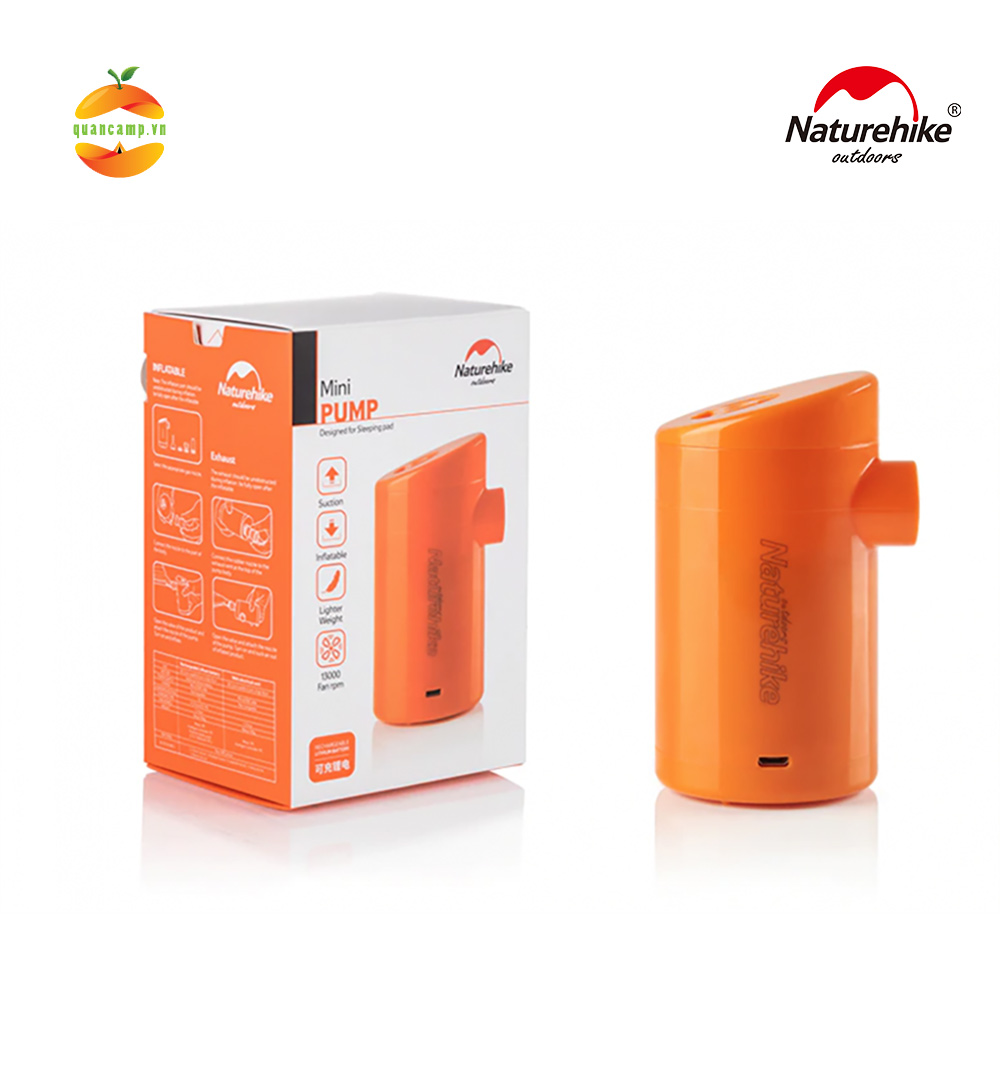 Bơm hơi sạc điện NatureHike NH17C100-B dùng để bơm hơi cho gối hơi và đệm hơi dã ngoại hoặc thuyền hơi. Bơm có dây sạc USB đi kèm.